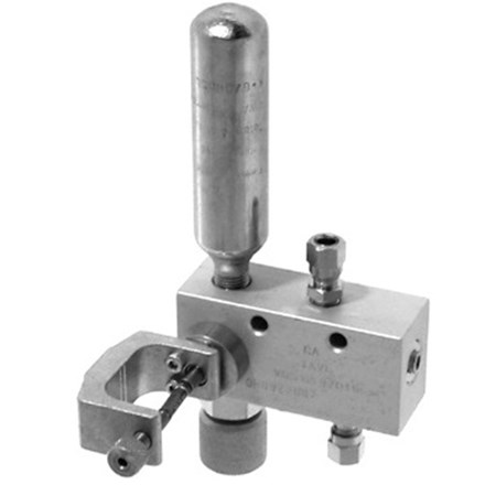 Służy do zasilania siłownika pneumatycznego oddymiania z własnego naboju CO2 lub z instalacji CO2. Uwolniony gaz zostaje skierowany do siłownika pneumatycznego oddymiania, powodując otwarcie skrzydła klapy.